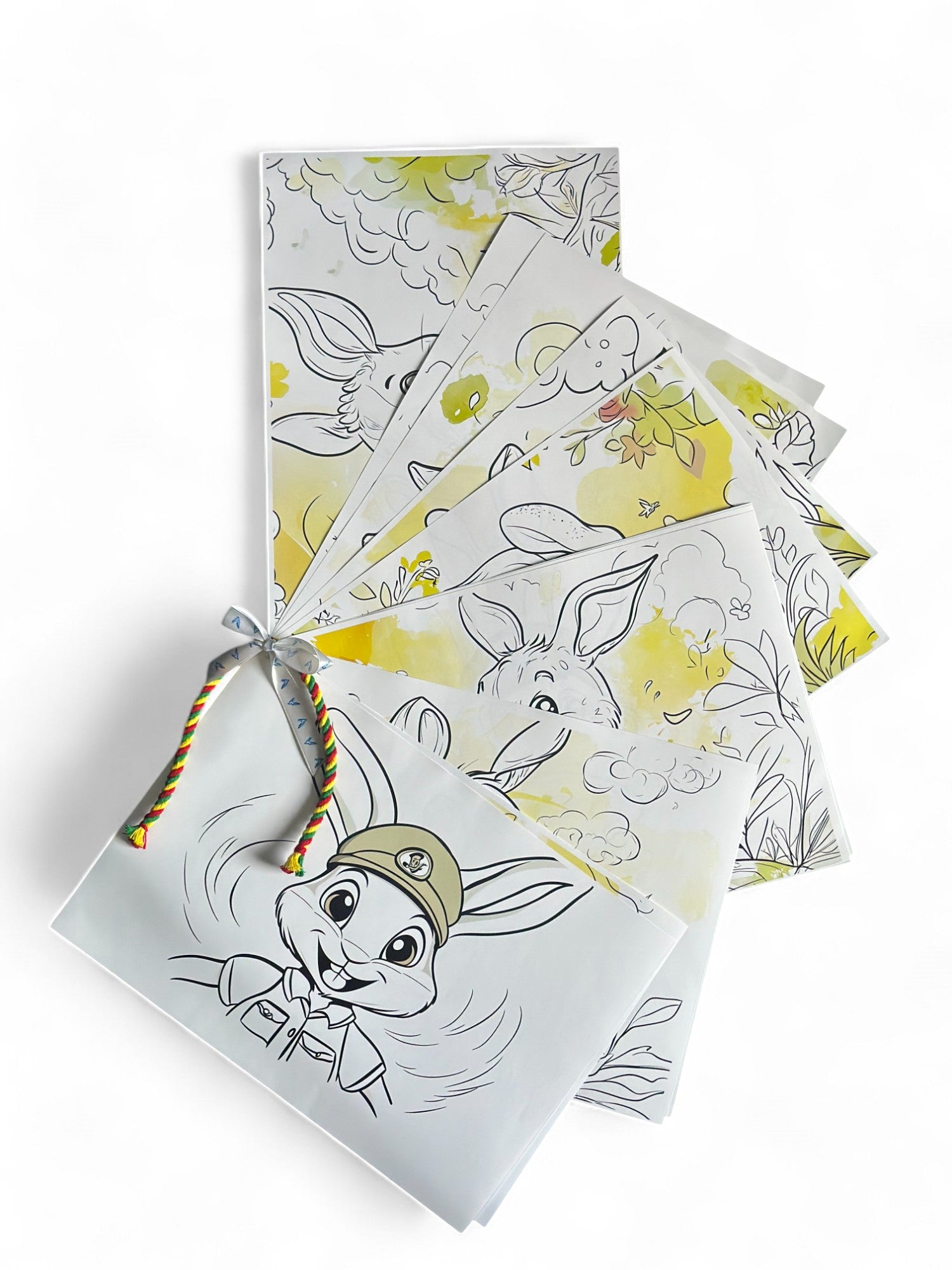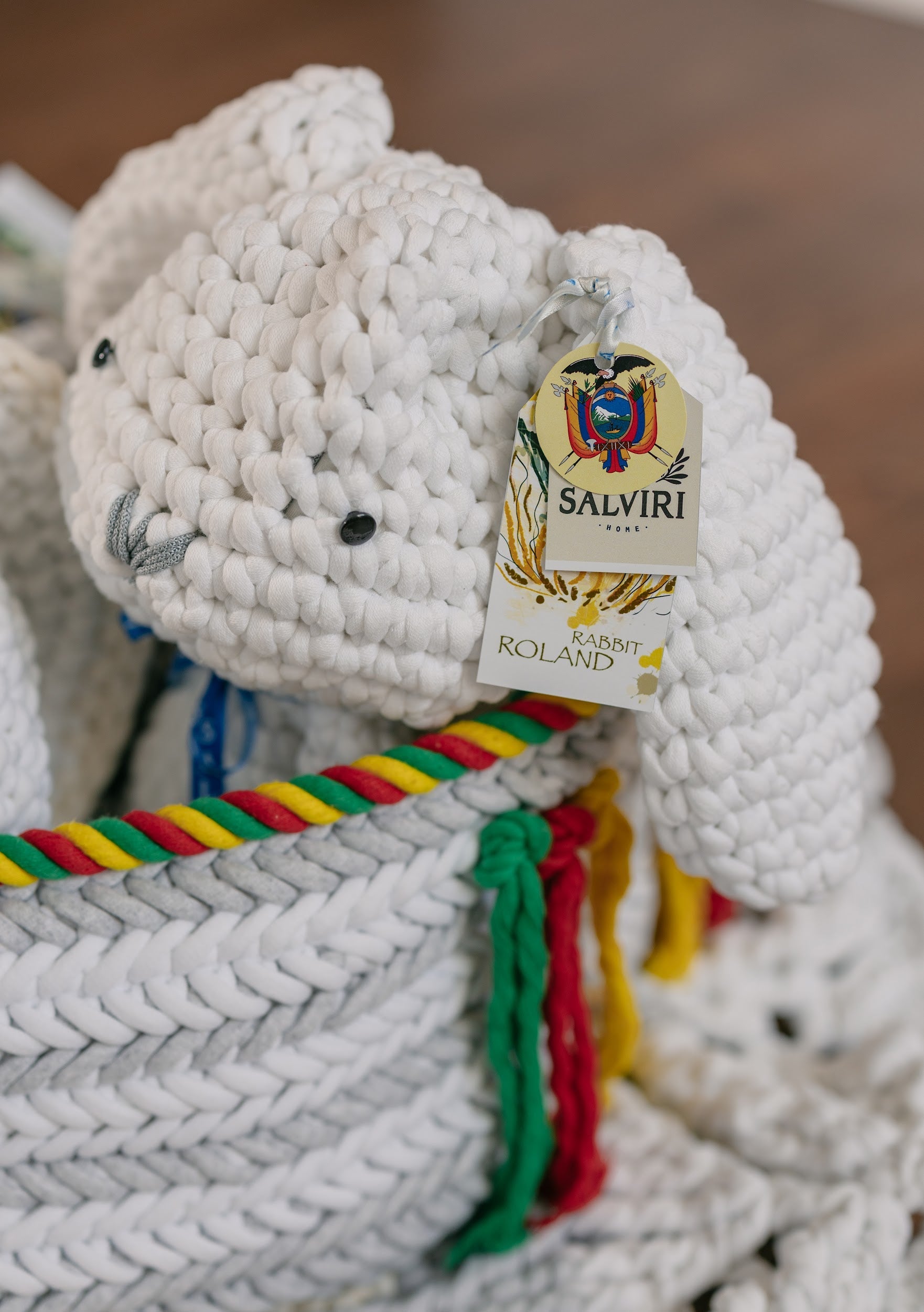 This children's toy will become a true friend for your child. Made from thick, pleasant-to-the-touch yarn, Roland the bunny, who arrived from the meadows of Ecuador, will stimulate your child's imagination. The toy comes with a set of coloring pages and an original painting of the bunny on canvas.
