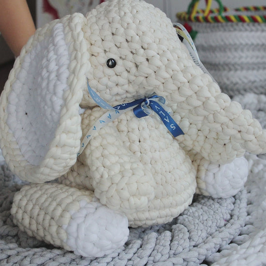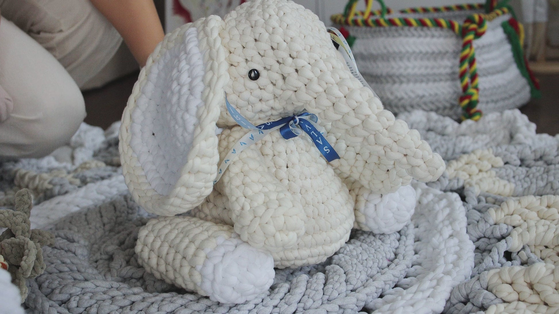 This crocheted round rug is handmade with a complex textured pattern, making it a unique decorative element that will be interesting for a child to explore. The rug is crocheted from high-quality soft yarn. The yarn is voluminous and consists of a cotton knitted cord filled with polyamide fibers inside, which allows the rug to remain voluminous and pleasant to the touch.